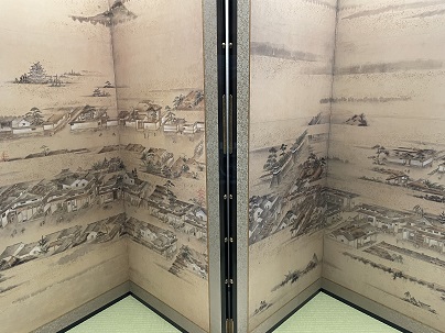 展示物の一つのびょう風です。江戸時代後期の広島城下町の様子を知ることができる数少ない絵画資料です。