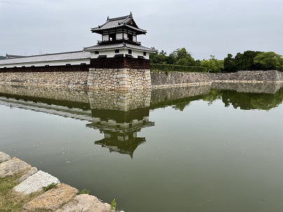 20分少々歩くと辿り着きました。堀があって味のある城でした。これは二の丸です。