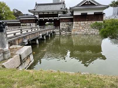 堀には錦鯉が泳いでいました。近くの子供が「あ!海。」と言ったのは微笑ましかったです。