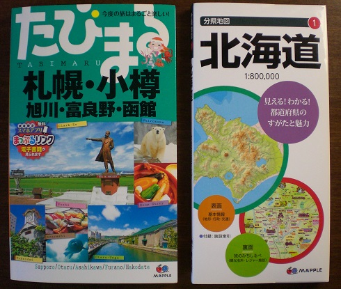 ホテルと航空チケットを予約しお馴染みのたびまると北海道の分県地図も用意しておきました。