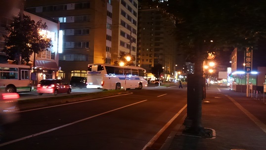 これが夜の旭川市内の道路です。やはり札幌よりも人は少ないです。
