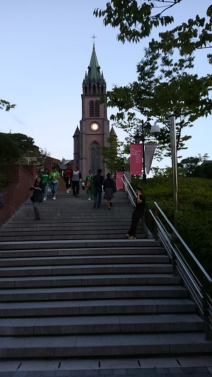 韓国カトリック教会の総本山、明洞大聖堂です。明洞キルは屋台と人でごったがえしていました。しかし原宿よりかはましです。いろいろな店があり、最も人気のある街といった感じで栄えていました。綺麗なスタイルのいい女性が多いと感じました。