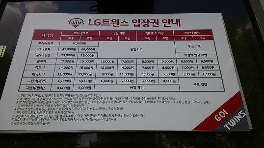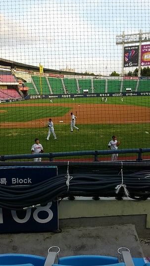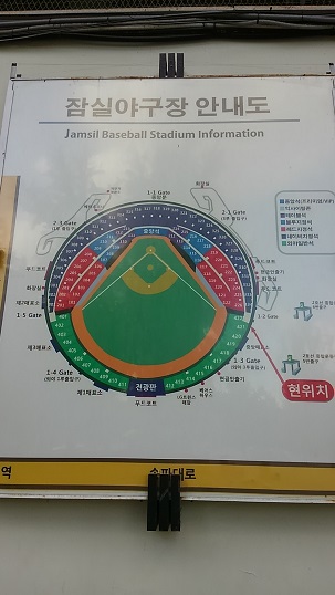 昼食を食べてから三角地駅(Samgakji)から地下鉄4号線に乗って銅雀(Dongjak)で9号線に乗り換え蚕室総合運動場まで行きました。韓国プロ野球を観るためです。その日はLGツインズ対ネクセンヒーローズです。