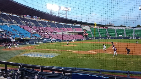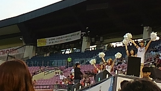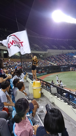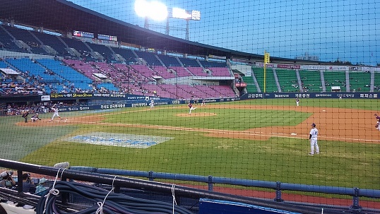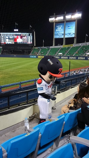 マスコットキャラと写真を撮っていました。韓国プロ野球は無駄なサインなどがなくて、テンポが早くて見やすいと感じました。この辺は日本のプロ野球も見習って欲しいところです。