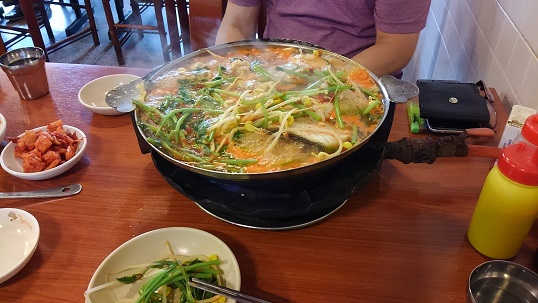 お昼を回り、予定していた三角地ウォンテグタンを漸く見つけて、ピリ辛ホットタラ鍋を食べました。