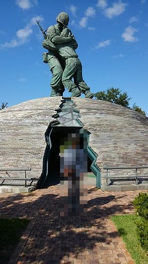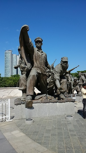 最初に目にするのがこのドームの像ですが、これは朝鮮戦争で分かれてしまった兄弟が兄は韓国軍として、弟は北朝鮮軍として再会する場面です。