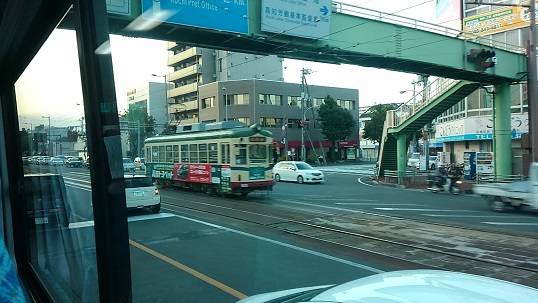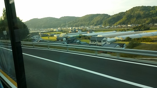 空港から出ているバスの本数は少ないです。4:10高知駅行きのバスに乗りました。これは車窓から見た風景です。どことなく山梨に似ているななんて思いました。