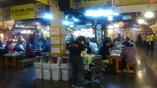 ひろめ市場の中はこんな感じです。いろんなお店があり、プライベートもくそもなくごったがえしています。こういう所は都会にはありません。町中に入り中国人が多いなという印象がありましたが、ここにくるとはっきり中国人が多いというのが分かります。折角の高知の旅行気分が台無しになります。